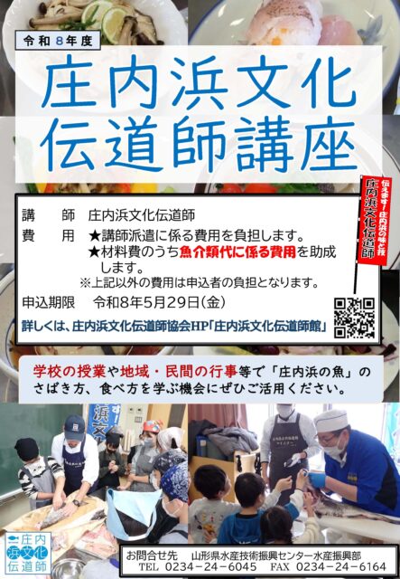令和6年度の受付を終了いたしました! ◆「庄内浜文化伝道師による食育教室(庄内地域)」令和6年度の開催団体を募集します。庄内地域の小学校、中学校、高校等の「学校」の授業や、PTAの親子行事、公民館や民間で開催する「親子料 […]