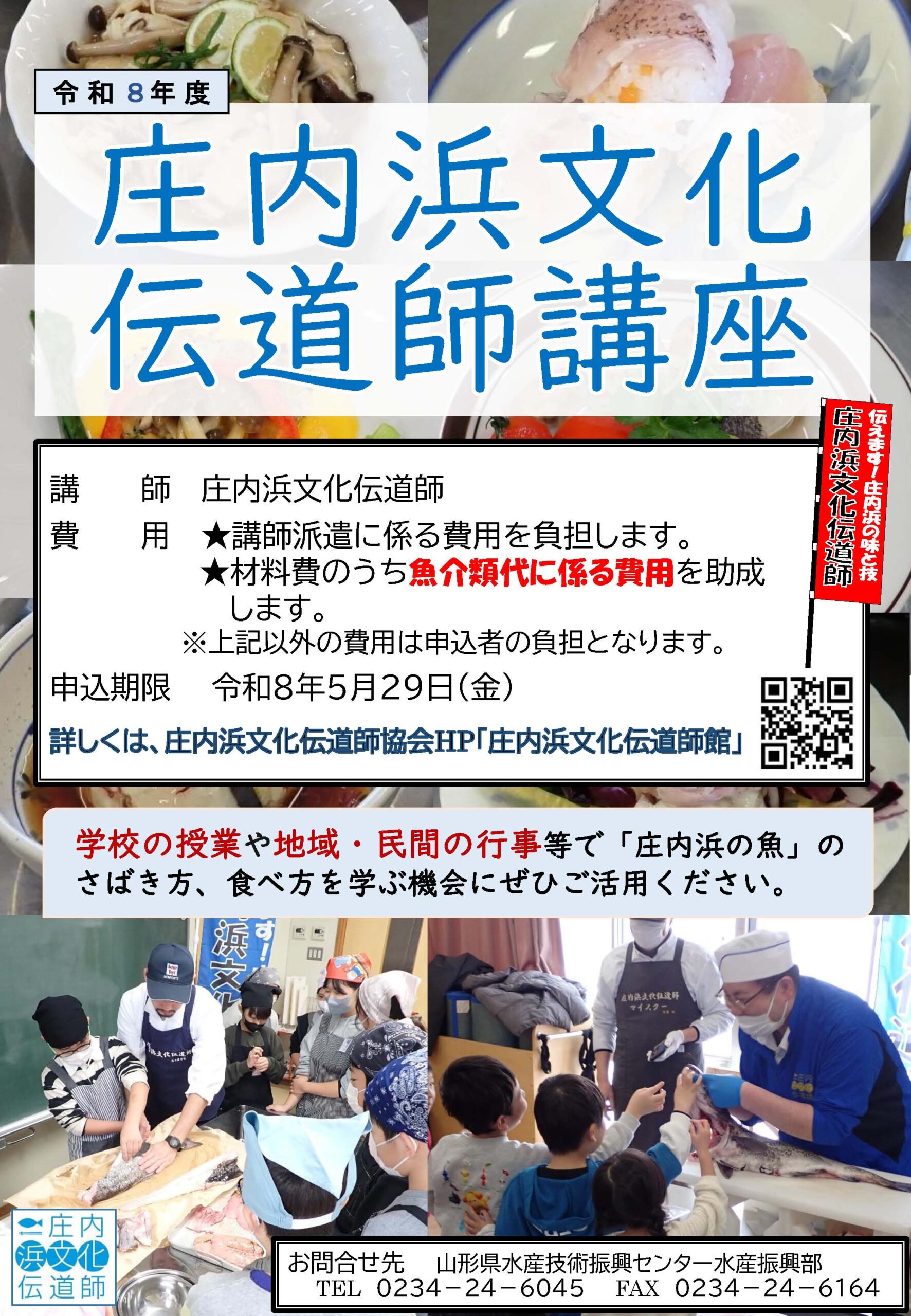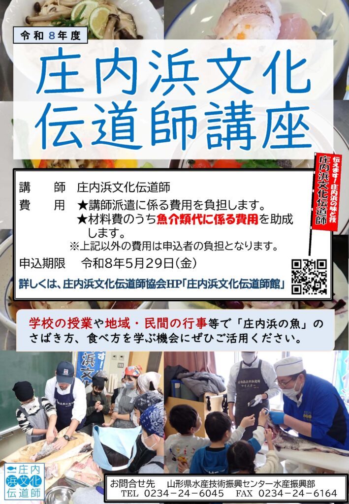 地域の魚を食べる文化の伝承と庄内浜産水産物の消費拡大を図ることを目的として「庄内浜文化伝道師講座」を実施します。